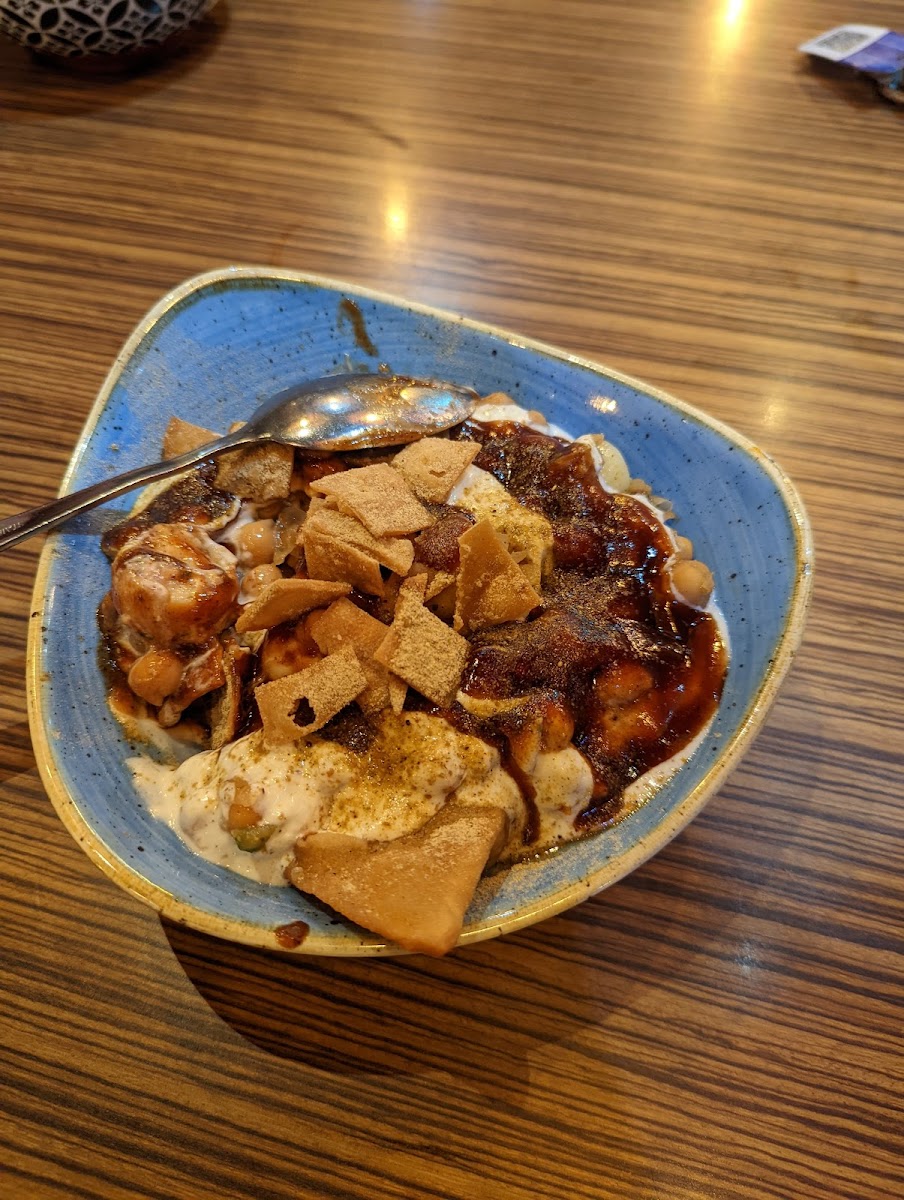 Enjoyed a nice meal here after coming to Manchester for a concert. We weren't sure we would get a table as it was late but the staff were friendly and accommodating and got us a table. We looked through the menu and chose the combo platter and Chana Chat. They were both very nice especially the Meat Samosas. For main we had Karahi Chicken with thigh meat which was so tender. Very good portion sizes and good value for money. Well worth the visit.
